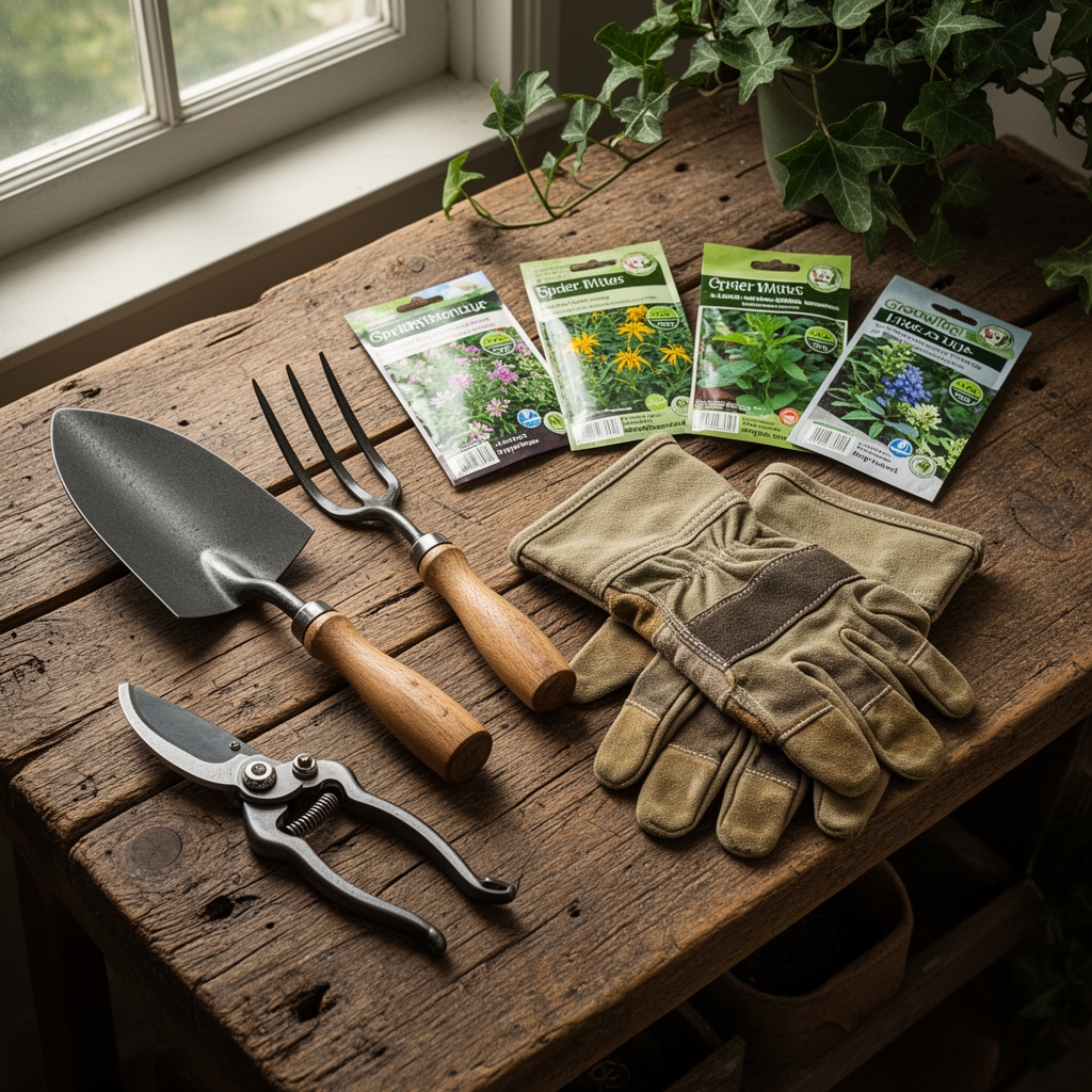 Assemble pH-neutral insecticidal soap (7.0 pH) formulated with potassium salts of fatty acids at 1-2% concentration. Horticultural oil at 2% solution in water (pH 6.5-7.0) suffocates mite eggs and adults through spiracle occlusion. Neem oil containing 0.9% azadirachtin disrupts mite molting and reproduction. A handheld magnifier at 10x magnification confirms mite presence. Prepare 70% isopropyl alcohol in spray bottles for spot treatment. Microfiber cloths remove webbing and dead mites without damaging leaf cuticles. For post-treatment recovery, select a balanced 4-4-4 organic fertilizer with kelp meal to restore auxin distribution and promote new growth. Keep distilled water at room temperature for dilutions to avoid pH fluctuations that stress weakened plants.